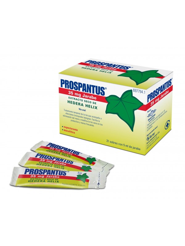 Prospantus Jarabe en sobres es un medicamento a base de plantas utilizado como expectorante para la tos productiva que acompaña a afecciones bronquiales benignas. Facilita la eliminación de la mucosidad.